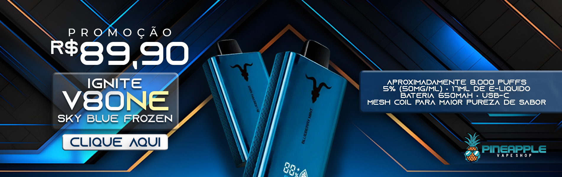 A PROMO! Ignite V80 NE SKY Blue Frozen – 8.000 Puffs – Pod Descartável