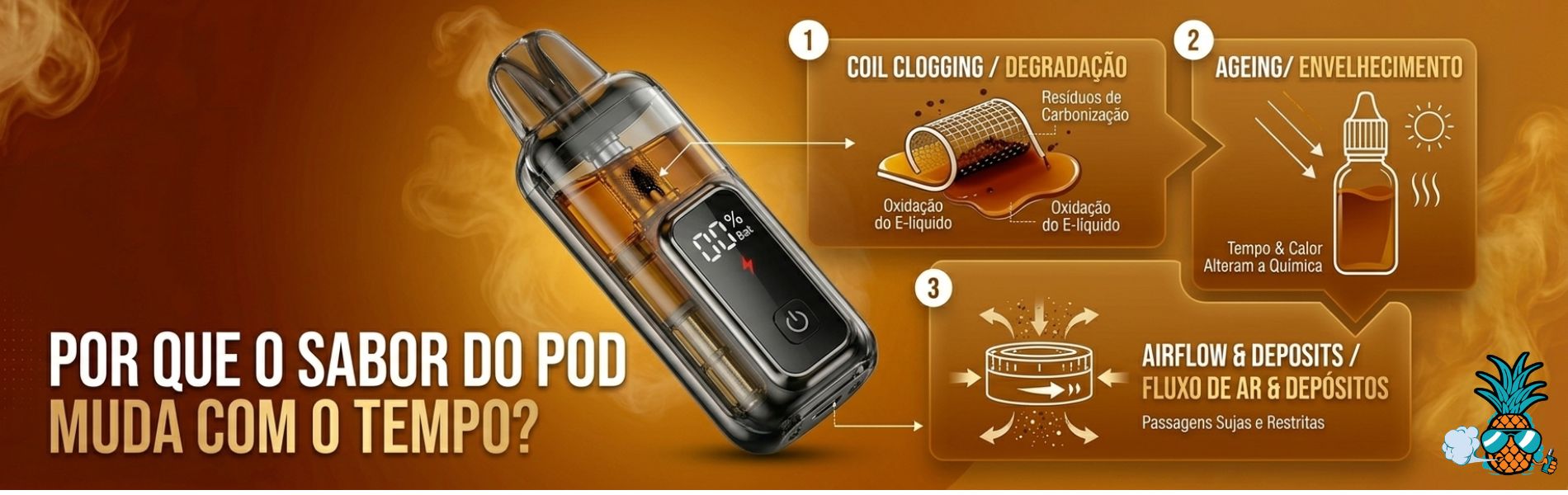 A mudança de sabor ao longo do tempo é algo natural em pods descartáveis. Isso acontece principalmente por: